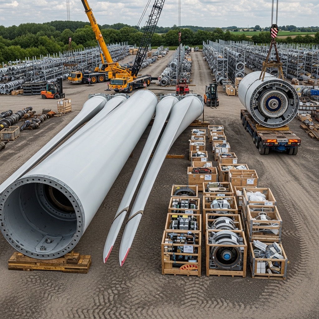 This refers to functional components from dismantling, repowering or replacement measures – e.g. gearboxes, generators, rotor blades, converters, electronics, hydraulics or complete spare parts packages.